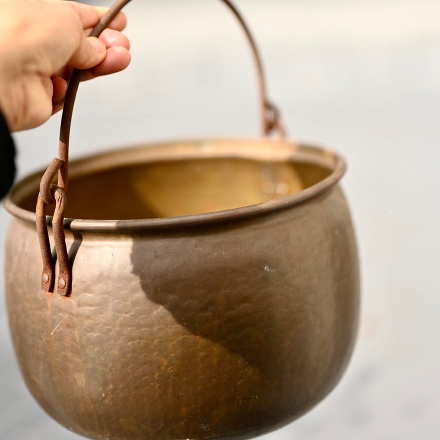 なんとも昔っぽい素朴な形。こちらは、お粥は作れないし、正しい使い方なんてものはなくて自由気ままに使ったら楽しそうな鍋です。植木鉢などを入れてもとっても素敵。